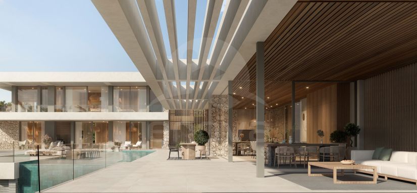 Villa til salgs i Mijas Costa med 7 Soverom, 7 Bad, 7 bad en suite, 1 toalett og funksjoner et svømmebasseng (Privat), en garasje (Privat) og en hage (Privat). Når det gjelder eiendommens dimensjoner, har den 1070 m² bygget, 1967 m² tomt, 770 m² interiør, 300 m² terrasse.