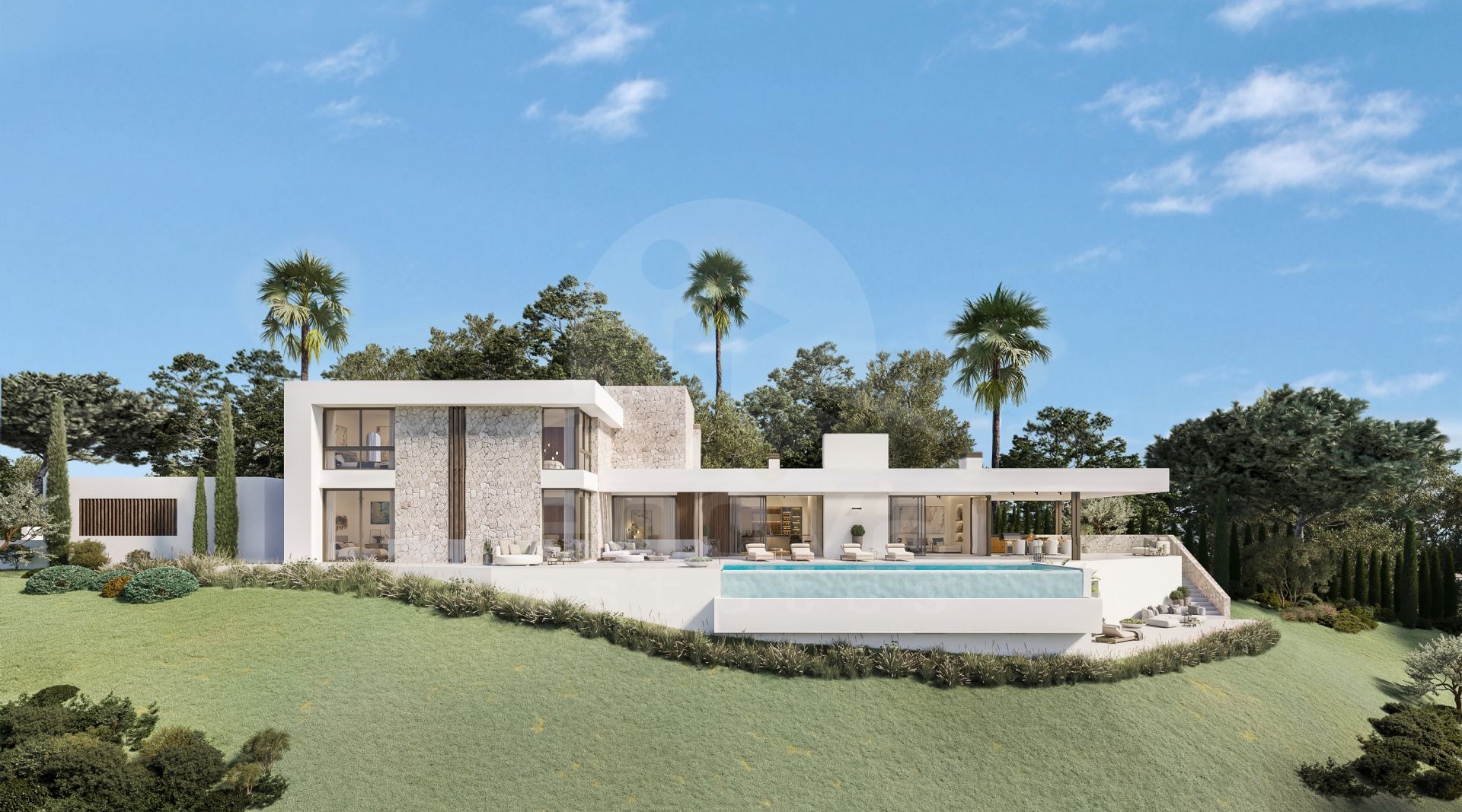 Villa til salgs i Mijas Costa med 4 Soverom, 4 Bad, 4 bad en suite, 1 toalett og funksjoner et svømmebasseng (Privat), en garasje (Privat) og en hage (Privat). Når det gjelder eiendommens dimensjoner, har den 605 m² bygget, 1624 m² tomt, 355 m² interiør, 250 m² terrasse.