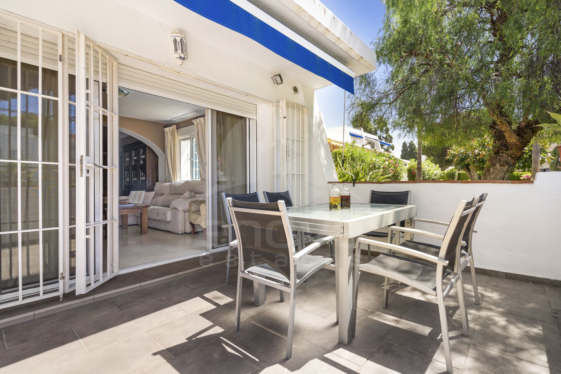 Ideelt plassert i hjertet av Nueva Andalucía, bare noen få skritt fra Puerto Banus, Casino og et bredt utvalg av butikker, restauranter og strender, kombinerer denne sjarmerende sør-vendt 1. etasje leiligheten plass, komfort og utmerket potensial.