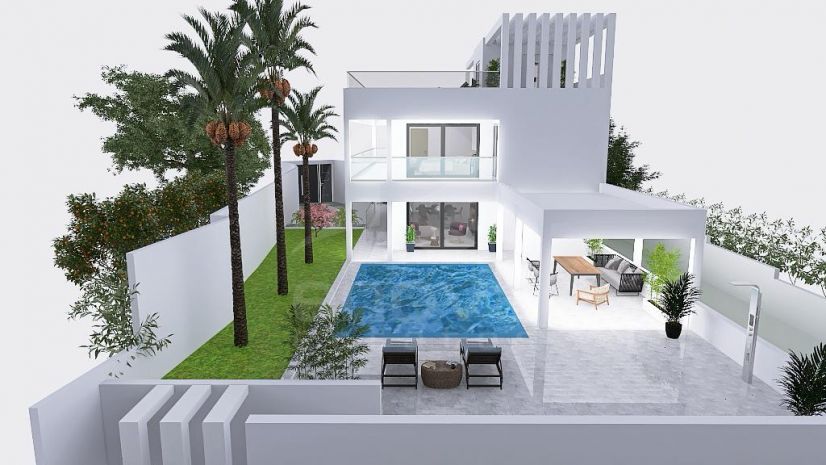 Eksklusiv, moderne luksusvilla tilbys i en avansert byggefase, med godkjent arkitektprosjekt og fullt interiørdesignprosjekt inkludert i prisen.