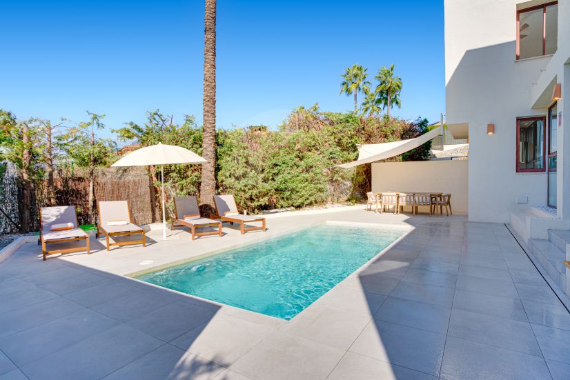 Bedøvelse, sør vestvendt, fem soverom hjørne byhus, som ligger i det gated community of Urb. Riviera Beach i Cancellada. Denne eiendommen har blitt fullstendig renovert i sommer til de høyeste standardene og tilbys fullt møblert. Designet med moderne åpenplan som bor i tankene, har hjemmet fem romslige soverom, inkludert to med eget bad, et familiebad og et gjestetoalett. Eiendommen har et privat basseng i tillegg til tilgang til det vakre fellesbassenget og hagene, og tilbyr den perfekte blandingen av privatliv og resort-stil. Høykvalitets finish er tydelig gjennom hele, og det ekspansive solarium gir fantastisk hav- og fjellutsikt — ideell for avslappende eller underholdende. Dette hjemmet kombinerer stil, komfort og bekvemmelighet i et av Costa del Sols mest ønskelige områder.