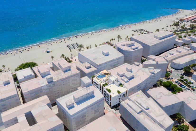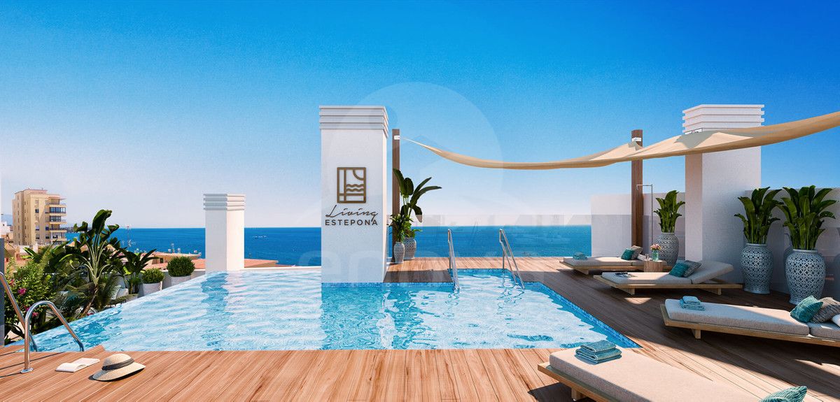 Dette er en unik mulighet til å bo i en boligutvikling på kun 23 leiligheter; 1 med ett soverom og 22 to soverom beliggende i sentrum av Estepona. Hver leilighet leveres med én parkeringsplass plassert under bakken og det er heisadkomst fra garasje til boligene. På toppen av bygningen har du en romslig sky-lounge med felles svømmebasseng med spektakulær havutsikt.