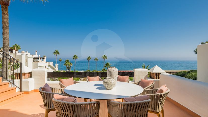 Die große Dachterrasse bietet einen atemberaubenden Blick auf das Mittelmeer und bietet Räume, die sorgfältig gestaltet sind, um im Freien zu essen, das Wohlbefinden zu genießen und den Komfort zu entspannen.