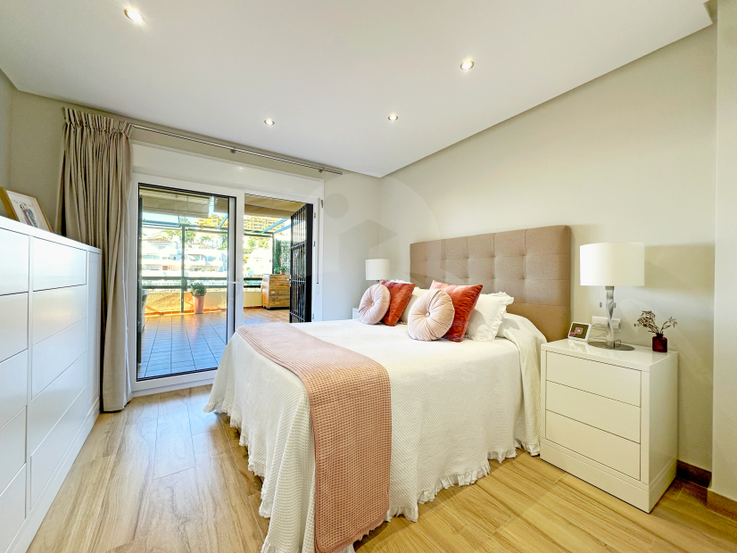 Erdgeschosswohnung zu verkaufen in Las Joyas, Estepona mit 2 Schlafzimmer, 2 Bäder, 1 eigenem Bad, die Immobilie wurde gebaut in 2005 und Merkmale ein Schwimmbad (Gemeinschaftlich), einer Garage (Privat) und ein Garten (Gemeinschaftlich). In Bezug auf die Abmessungen der Immobilie, hat es 106.9 m² gebaut, 89 m² Innenraum, 120 m² Terrasse.