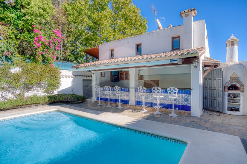 Elegante, südöstlich gelegene Villa mit fünf Schlafzimmern auf der New Golden Mile in Estepona, nur wenige Schritte vom Strand entfernt, bietet eine ideale Mischung aus Raum, Privatsphäre und Investitionspotenzial. Auf einem großzügigen Grundstück bietet das Anwesen helle Innenräume mit natürlichem Licht, fünf Schlafzimmer, vier Bäder und weitläufige Außenräume mit einem privaten Pool, angelegten Gärten, einer Außenküche und einem Barbereich und reichlich Parkplätze mit einer geräumigen Doppelgarage und einer Autofahrt – perfekt für Entspannung oder Unterhaltung. Während komfortabel und bereit, in, die Villa bietet auch ausgezeichneten Umfang für Renovierung und Modernisierung, bietet eine seltene Gelegenheit, um Mehrwert in einer der begehrtesten Lagen der Costa del Sol, in der Nähe von Golfplätzen, internationalen Schulen, Marbella, Puerto Banús, und das lebhafte Zentrum von Estepona.