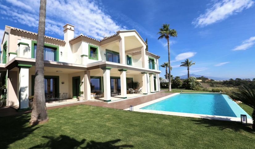 Villa auf Miete in Selwo, Estepona mit 5 schlafzimmer, 7 badezimmer, 5 ensuite badezimmer und 2 toilets, mit privat pool, privat garage (5 parkplätze) und privat garten. Was die Dimensionen anbelangt, die betragen 931 m² gebaut und 2.004 m² grundstück. Hat folgende Charakteristiken klimaanlage, komplett eingerichtet, küche komplett ausgestattet, waschküche, jacuzzi, sauna, fitness, alarm, sicherheitseingang, doppelverglasung, videoeingang, esszimmer, 24std sicherheitsdienst, gästetoilette, private terrasse, küche ausgestattet, wohnzimmer, meerblick, bergsicht, beheiztes svhwimmbad, fußbodenheizung im gesamten objekt, sicherheitsfensterläden, gitter, waschküche, internet – wi-fi, überdachte terrasse, 24std service, geschlossene wohnanlage, panoramablick , heimkino, teilweise fussbodenheizung, nähe golfplatz, spielzimmer, separates esszimmer, offene küche, hervorragender zustand, überwachungskameras, büroraum, armored door, aerothermik und internet – glasfaserkabel.