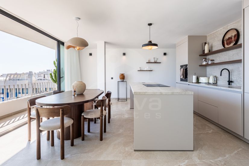 Elegant and beautifully reformed, three bedroom south facing penthouse, located in Playa de la Fontanilla, Marbella