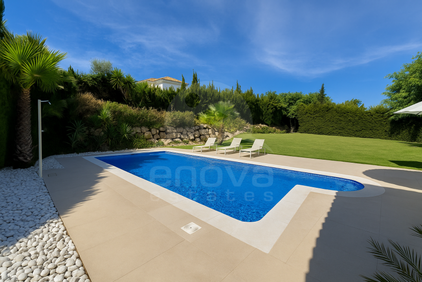 This beautifully renovated villa in Sotogrande Costa’s sought-after B-Zone offers modern elegance and spacious living. The property features five ensuite bedrooms, including two luxurious master suites, providing comfort and privacy for the whole family.