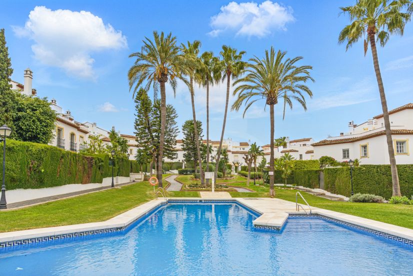Maravillosa casa de tres dormitorios con vistas al mar situada en Bel Air, Estepona. La propiedad se distribuye en dos niveles más un nivel adicional con amplio solarium. Este adosado ofrece una cocina totalmente equipada, salón y comedor; un aseo de invitados más un gran jardín privado con acceso directo a la piscina comunitaria. La primera planta tiene dos dormitorios, ambos con balcones Juliet; y un baño familiar. Además un master en suite con hermosas vistas a la piscina y al mar. Otras características incluyen aire acondicionado frío y caliente, armarios empotrados, persianas eléctricas y una plaza de aparcamiento. Cerca de la playa, escuelas y servicios locales, esta propiedad podría ser la casa familiar perfecta.