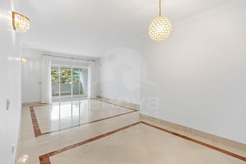 Elegante apartamento de dos dormitorios, frente a la playa, situado en el prestigioso Jardin del Mediterráneo, Golden Mile Marbella