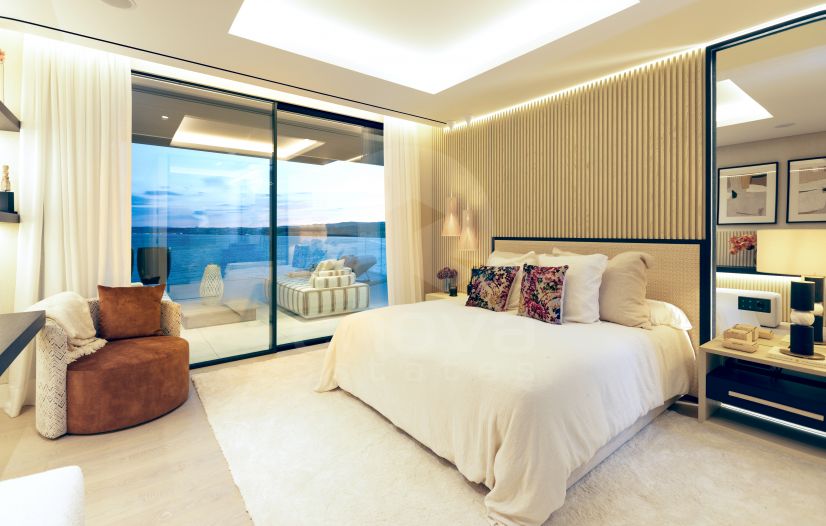 Detta nybygge har följande egenskaper: Gym, Havsutsikt, Frontlinje strand, Bekvämligheter nära, Luftkonditionering, Centralvärme, Smart hem system, Uppvärmd pool, Strandsida, Poolsutsikt, Nära havet/stranden, Bastu, Inomhuspool, Utomhuspool, Garage och Hiss.